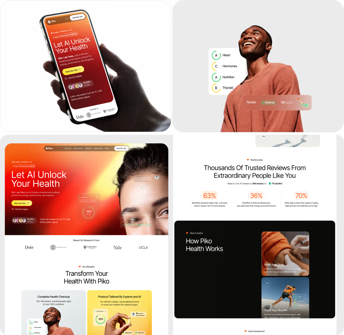 Piko is a personalized digital health platform. Arounda designed a conversion-focused landing page with clear value propositions, trust signals, and structured decision flow. The result was a +29% increase in trust perception and a 38% decrease in perceived interface complexity during early validation.