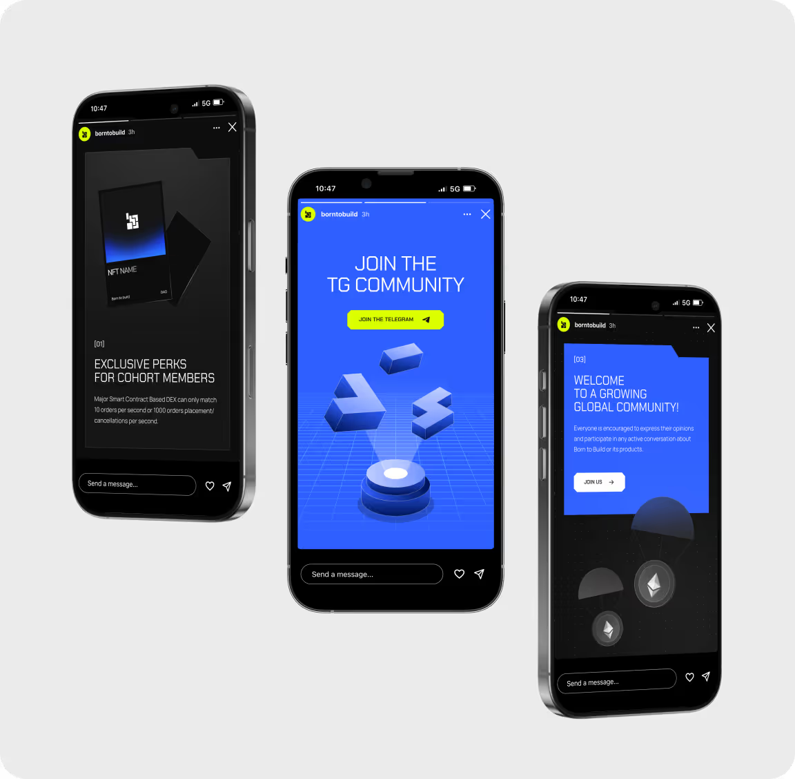 Born to Build DAO is a Web3 IDO launchpad built for a global crypto community. Our team designed the platform’s UI/UX to simplify DAO mechanics and guide key actions, leading to +67% user engagement and +25% mobile conversions.